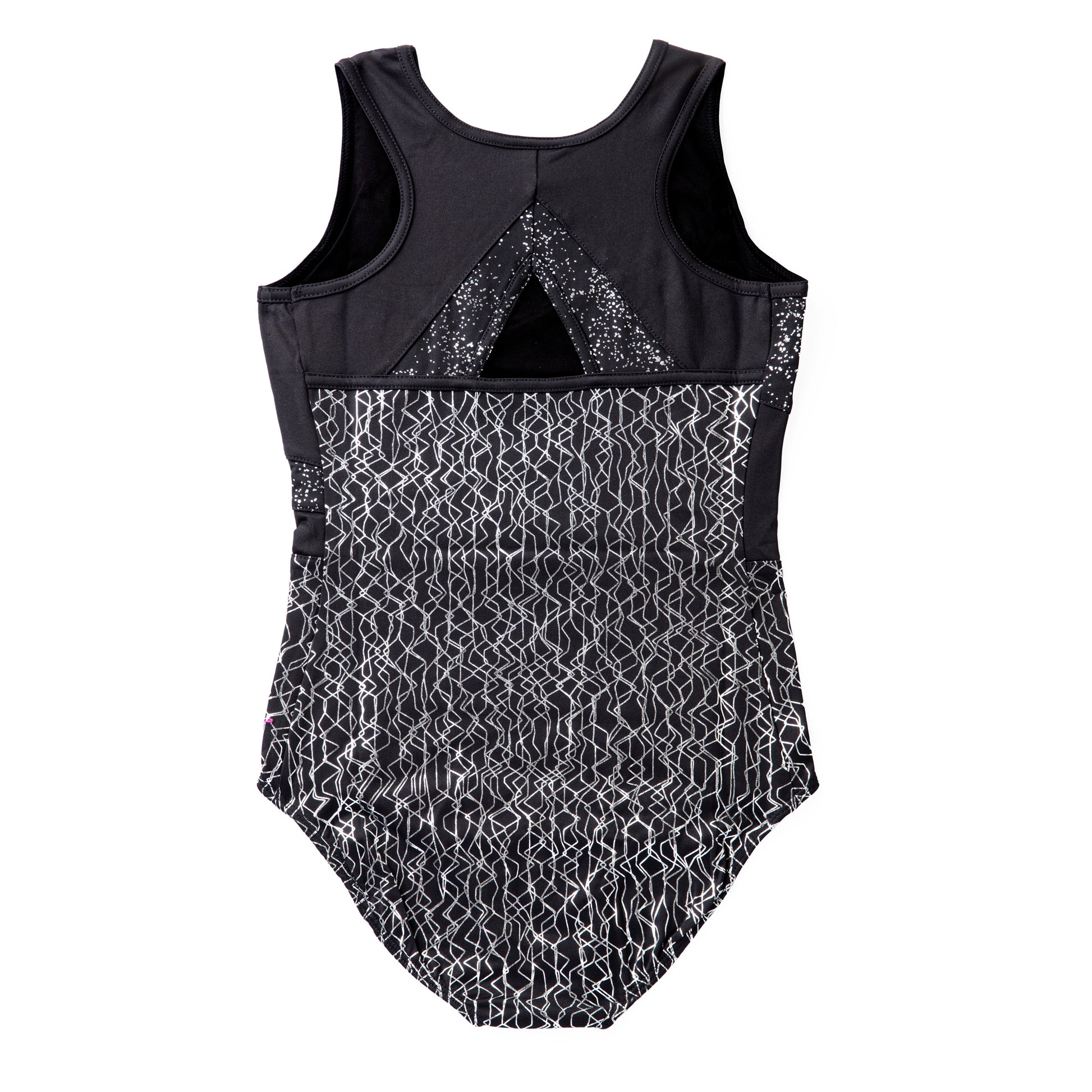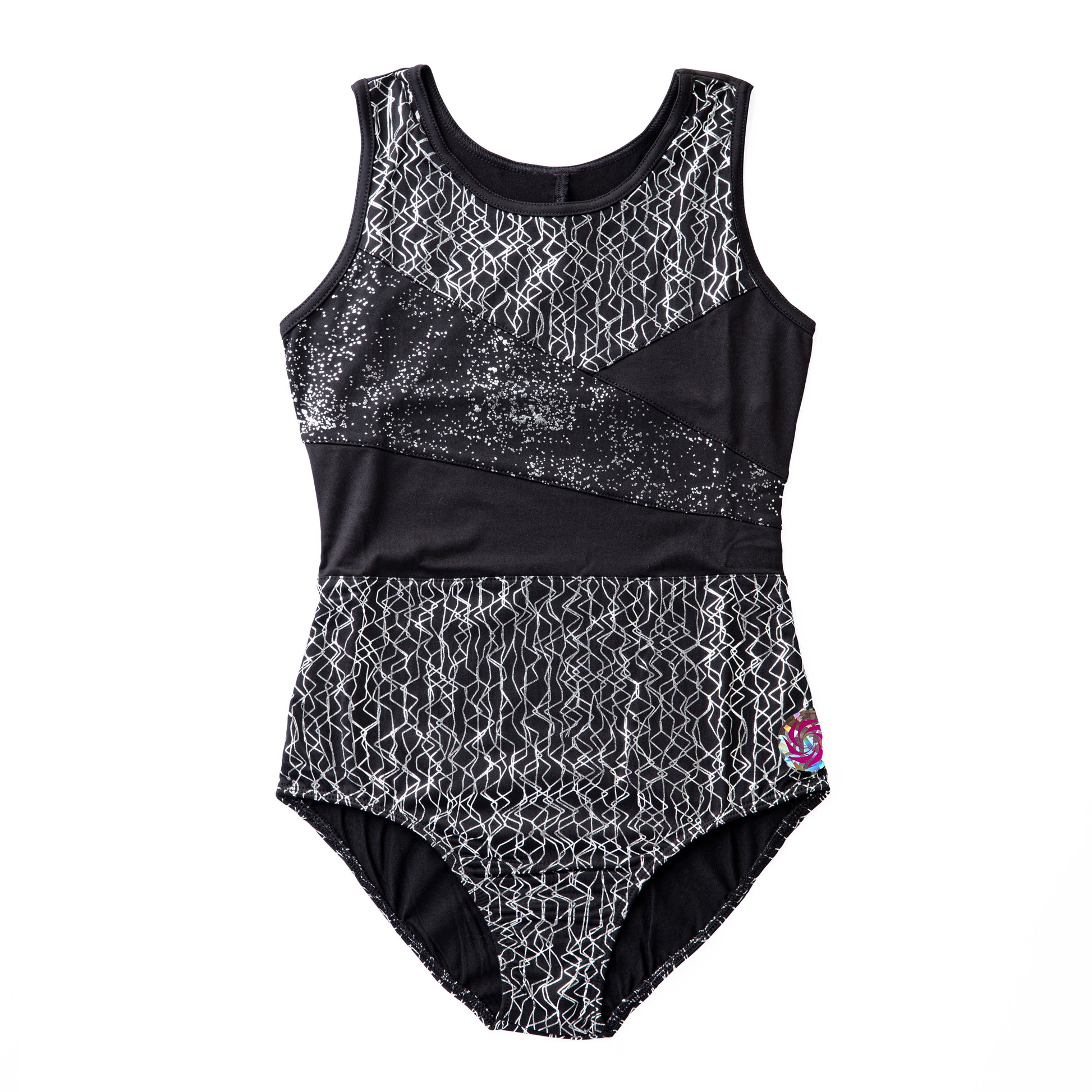 The Rainbeau Moves Girls’ Dance & Gymnastics Foil Tank Leotard brings together style, comfort, and performance for every young mover. Designed with a classic sleeveless tank silhouette, it supports full range of motion so dancers and gymnasts can move with confidence. Shimmering silver foil accents on both the front and back deliver eye-catching sparkle under studio lights, while the lightweight, breathable fabric keeps them cool and comfortable through every routine. Finished with bold black triangle motifs on the front, this leotard offers a standout look that inspires confidence with every flip, leap, and twirl.